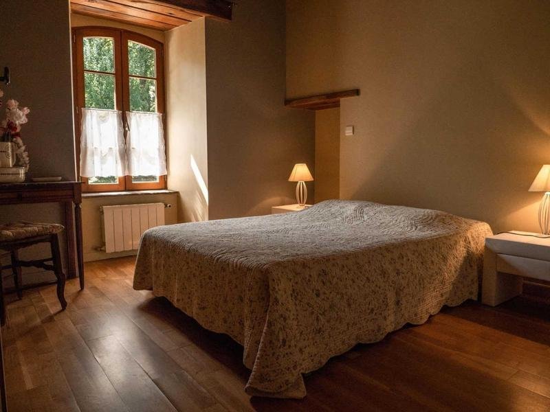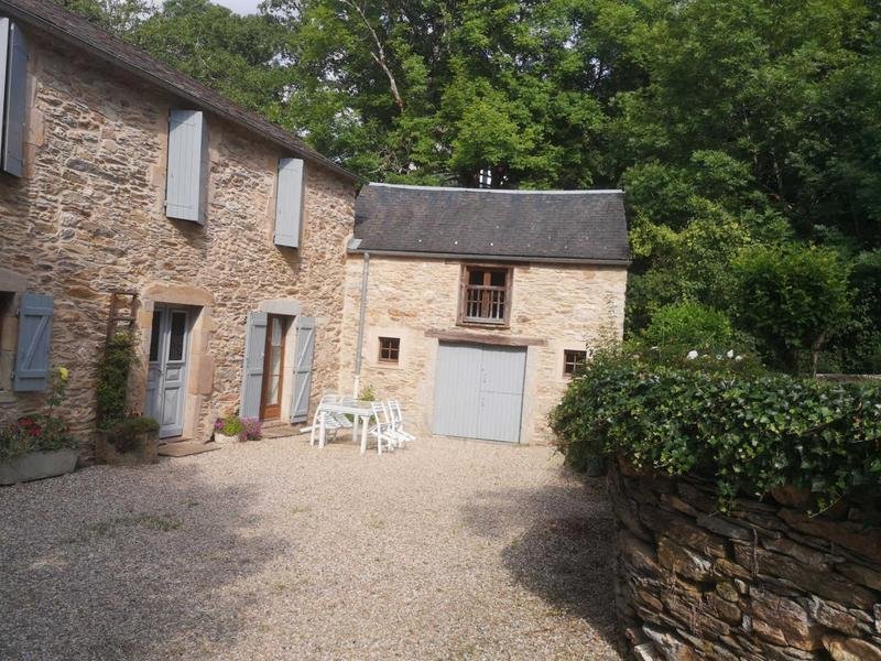 Gîte indépendant ouvrant d'un côté sur la cour et le jardin (portique), et de l'autre sur la terrasse dominant la cascade. Au rez-de-chaussée : grand séjour avec coin-salon et cuisine, salle d'eau avec wc, buanderie. A l'étage : trois chambres (quatre lits doubles), salle de bains, douche, wc. Chauffage central fuel. Téléphone, wifi.