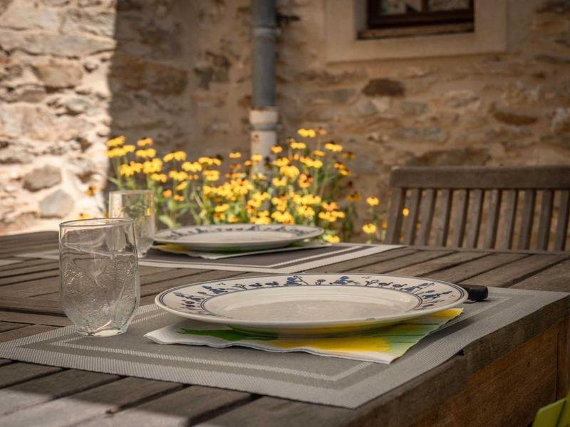 Cette maison de caractère en pierres, aménagée dans un ancien presbytère, est située dans le minuscule hameau de Saint-Michel-de-Léon, dans la vallée du Dadou.