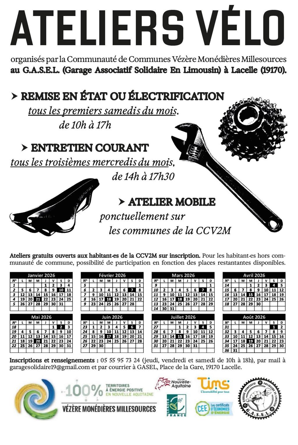 Ateliers vélo mis en place par la Communauté de Communes V2M et GASEL place de la gare à LACELLE et atelier mobile, ponctuellement sur les communes de La CCV2M.