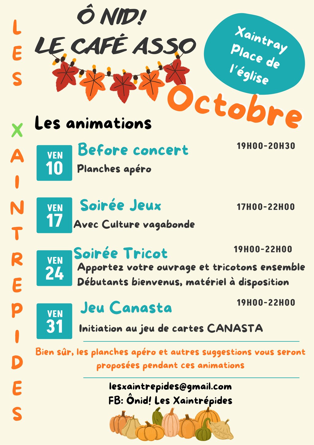 PROGRAMME des ANIMATIONS d'Octobre du Café Associatif Ô NID