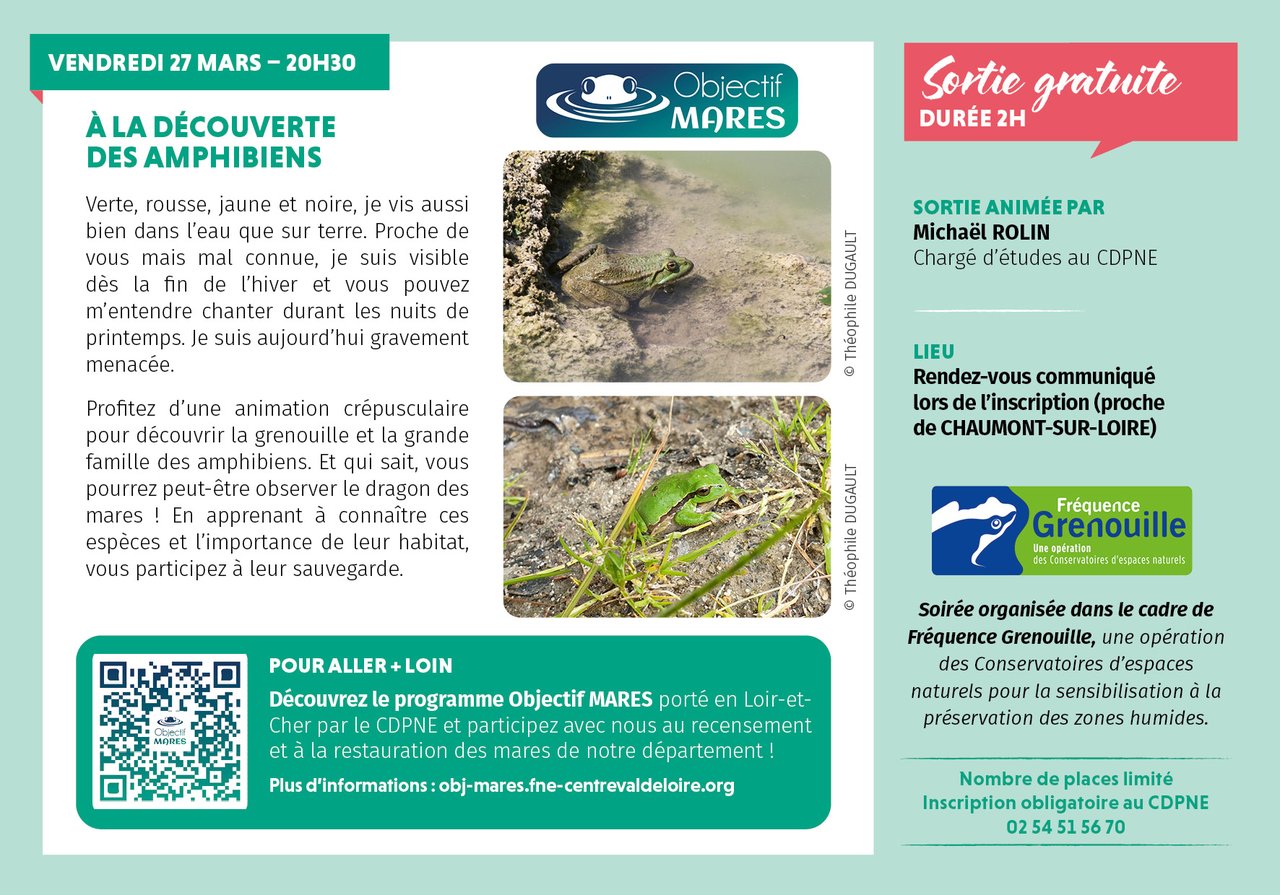« A la découverte des amphibiens », le vendredi 27 mars 2026 à 20 h 30. Sortie animée par Michaël ROLIN, Chargé d’études faune au CDPNE.