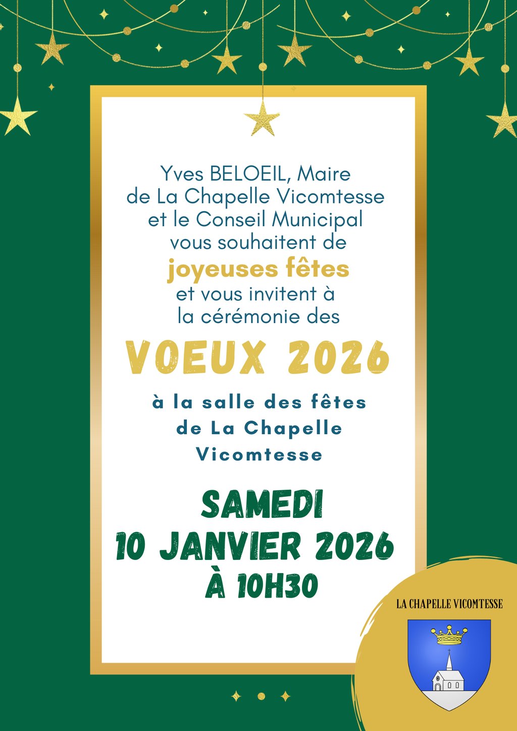 Rendez-vous samedi 10 janvier 2026 à 10h30 à la salle des fêtes de La Chapelle Vicomtesse.