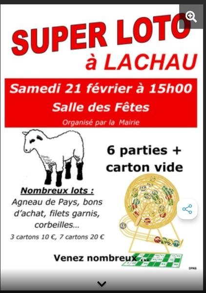 De nombreux lots à gagner : agneau de pays, bons d'achat, filets garnis, corbeilles... 6 parties + carton vide.