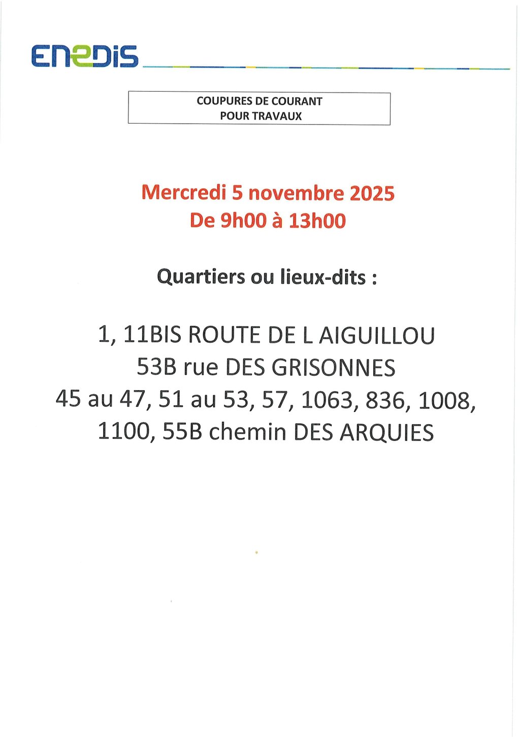 AVIS COUPURE DE COURANT ENEDIS