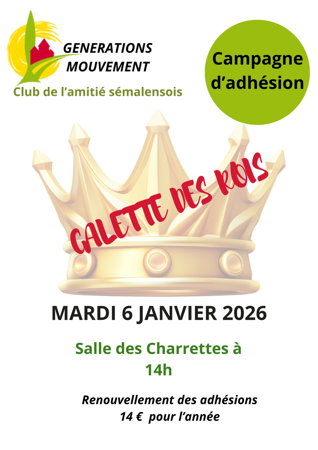 GALETTE DES ROIS-CLUB DE L'AMITIE-CAMPAGNE D'ADHESION