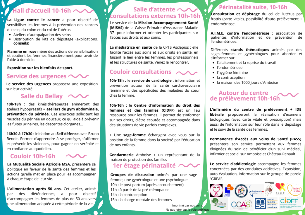 Le Centre Hospitalier d'Amboise (CHIC) et la Communauté Professionnelle Territoriale de Santé (CPTS) "Asclépios" organise une journée santé de la femme :