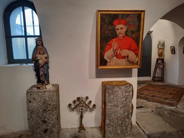 Nichés dans la crypte de l'église, ce sont les objets lui ayant appartenu, mais également des souvenirs de famille, les lettres, photos, journaux et documents des moments forts qui ont ponctué la vie de ce cardinal bâtisseur, né petit berger à Lacroix-Barrez. De riches vêtements sacerdotaux des églises du canton sont également visibles.