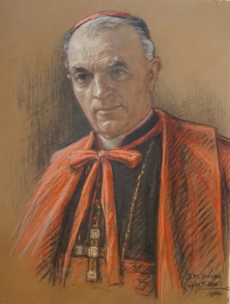 " Le cardinal bâtisseur " né le 19 février 1864 à Lacroix-Barrez, Jean VERDIER étudia au Séminaire de Rodez et entra en 1886 chez les Sulpiciens. Le 9 avril 1887, il fut ordonné prêtre et enseigna au Séminaire de Périgueux qu'il dirigea de 1898 à 1912. De 1912 à 1920, il appartient à la Faculté de Théologie de Paris et fut supérieur du Séminaire des Carmes. Il fut nommé en 1923 chanoine honoraire de Notre-Dame de Paris et, de 1926 à 1929, dirigea sa congrégation en tant que supérieur général. En 1929, il fut nommé vicaire général du diocèse de Paris et protonotaire apostolique puis, la même année, archevêque de Paris. Le 16 décembre 1929, le Pape Pie XI le créa cardinal-prêtre attaché à l'église Santa Balbina. Comme légat, il représenta le pape à de nombreuses occasions en France et à l'étranger. En 1931, il lance l'oeuvre des Chantiers du Cardinal, construisant 110 églises dans Paris et en banlieue parisienne, mais aussi en France. Il mourut le 9 avril 1940 à Paris. Il fut inhumé en la Cathédrale Notre-Dame de Paris.