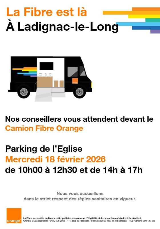LE CAMION FIBRE ORANGE PRÉSENT À LADIGNAC LE MERCREDI 18 FÉVRIER 2026