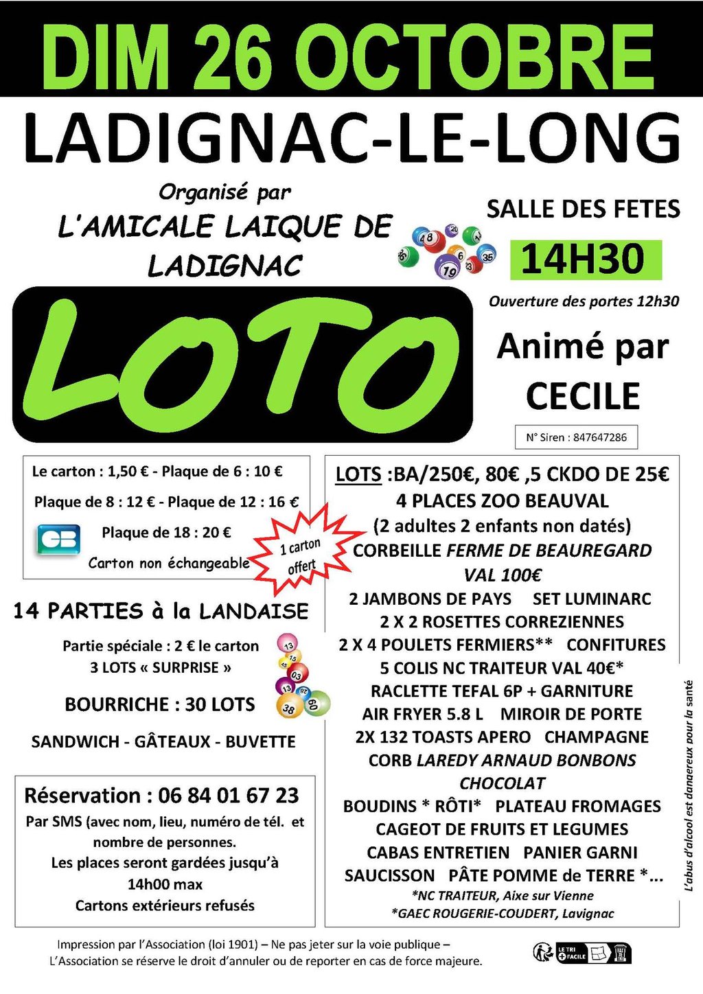 LOTO AMICALE LAÏQUE - DIMANCHE 26/10