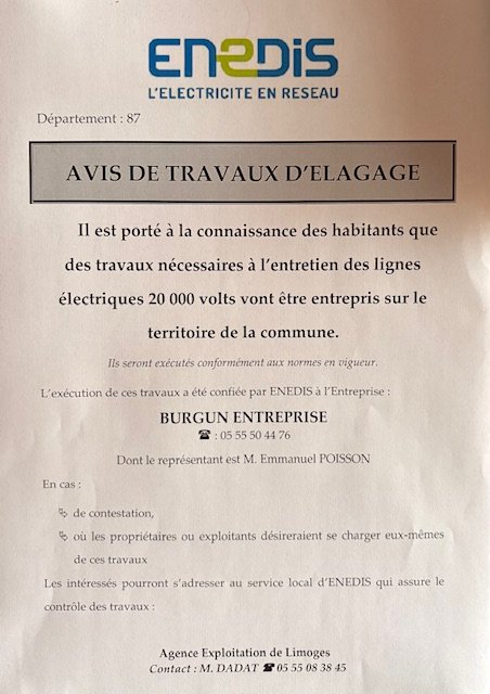 TRAVAUX D ÉLAGAGE SUR LE RESEAU ENEDIS À PARTIR DU 24/09