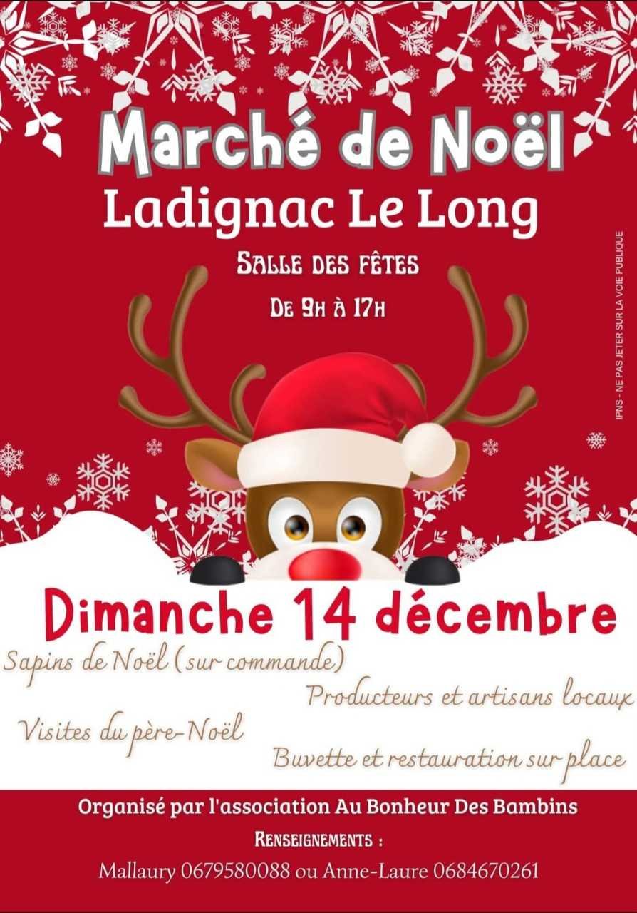 Nous sommes ravis d'annoncer l'organisation d'un marché de Noël qui se déroulera le 14 Décembre 2025 à Ladignac le Long.