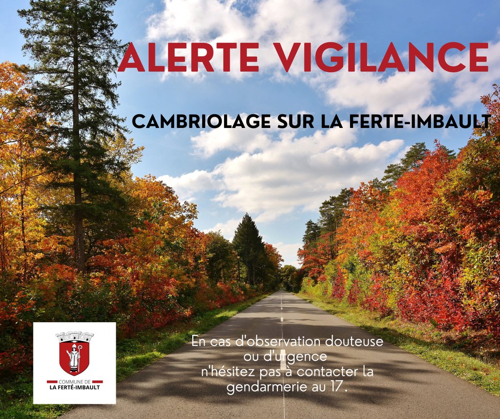 ⚠️ ALERTE VIGILANCE – CAMBRIOLAGE SUR LA FERTÉ-IMBAULT ⚠️