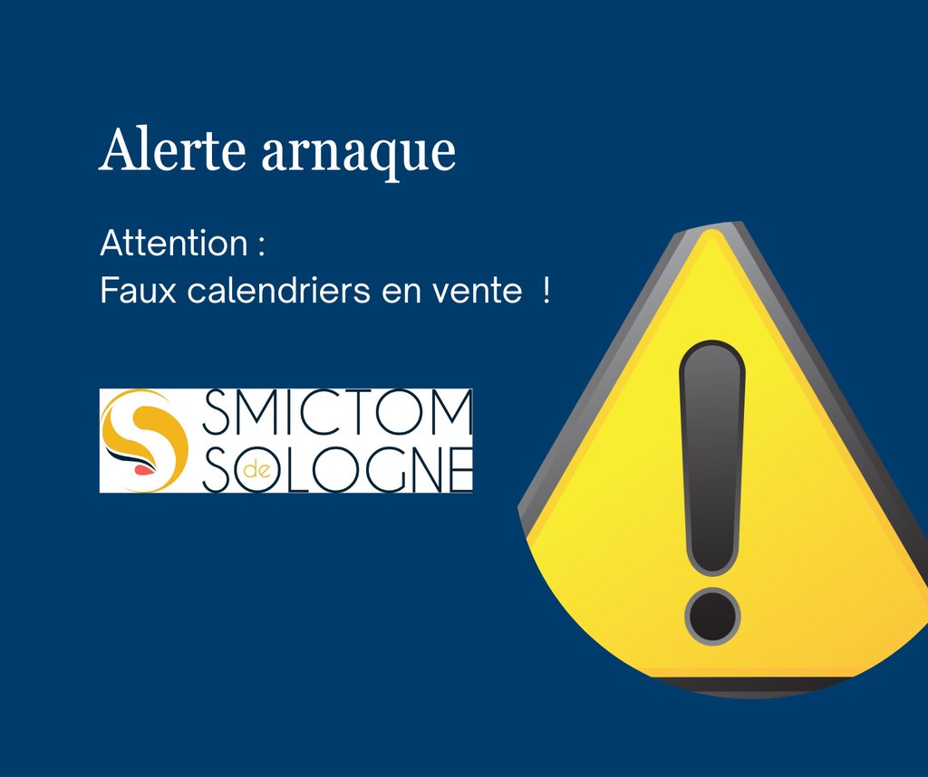 Si quelqu’un se présente chez vous en prétendant vendre un calendrier au nom du SMICTOM de Sologne, il s’agit d’une arnaque.