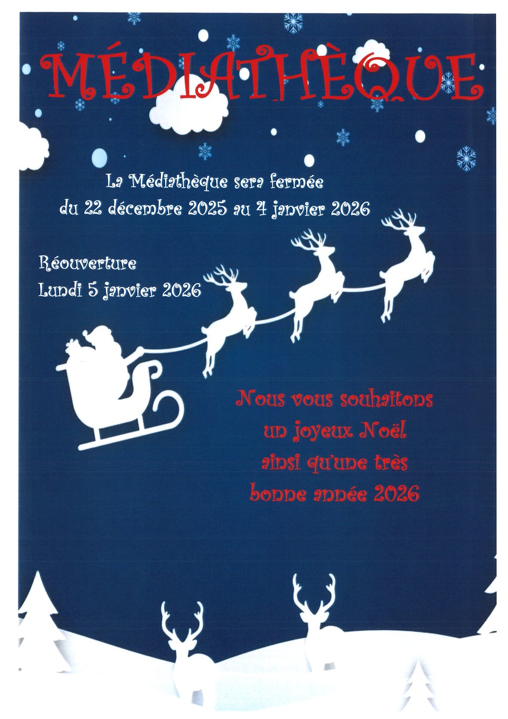 FERMETURE DE LA MÉDIATHÈQUE DU 22 DÉCEMBRE 2025 AU 04 JANVIER 2026