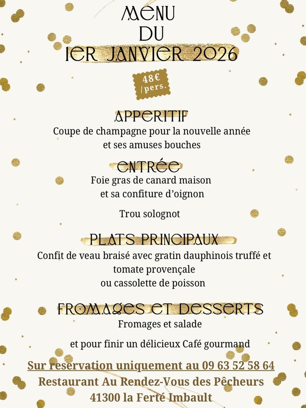 Pour le 1er jour de l’année, le restaurant Au rendez-vous des pêcheurs vous propose un menu spécial plein de saveurs et de convivialité 😍