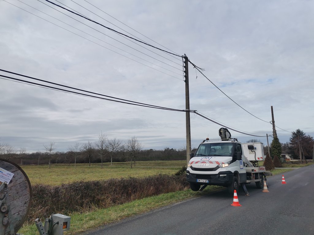 Le SIDELC, en partenariat avec la mairie de La Ferté-Imbault, a engagé une entreprise spécialisée pour sécuriser les fils électriques sur la RD73.