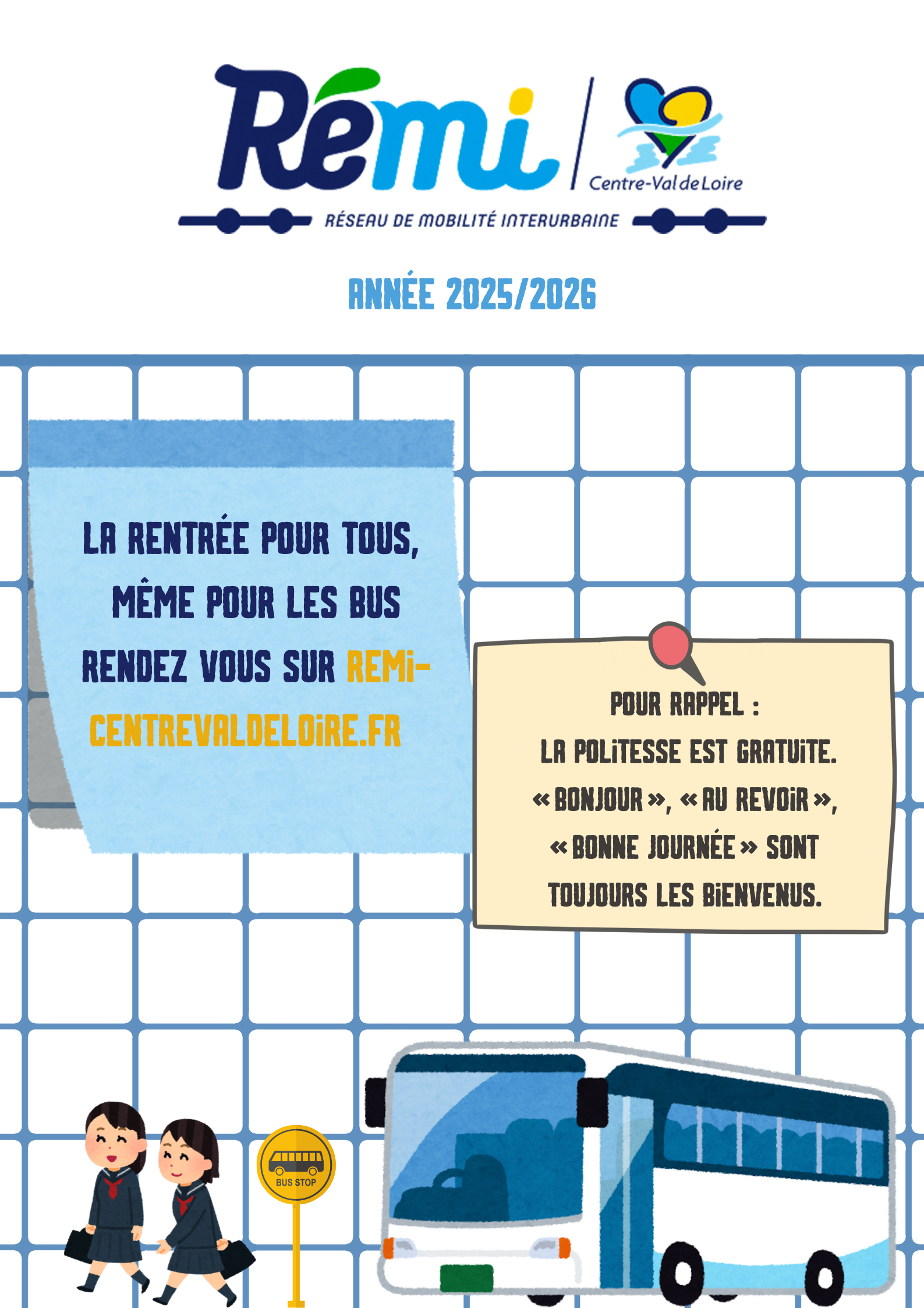 👉 Préparez au mieux la rentrée et consultez dès maintenant les horaires et points d'arrêt des circuits scolaires sur notre territoire pour l'année 2025-2026 sur le site internet : https://remi-centrevaldeloire.fr