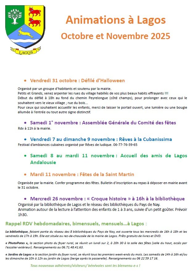 ANIMATIONS OCTOBRE NOVEMBRE 2025