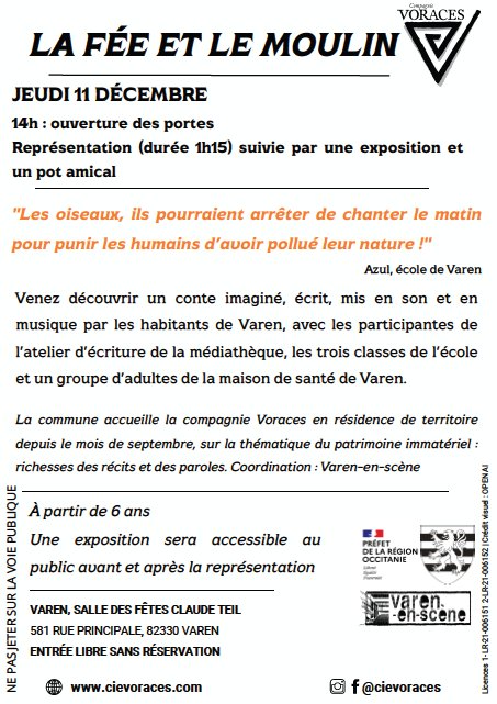 Rendez-vous pour la restitution de la résidence de territoires pour une Lecture musicale par les habitants de Varen et la compagnie Voraces.