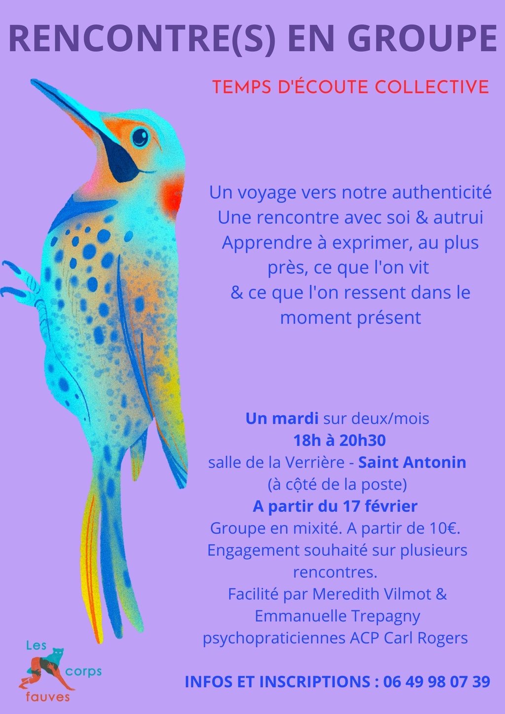 Facilité par Meredith Vilmot & Emmanuelle Trepagny psychopraticiennes ACP Carl Rogers