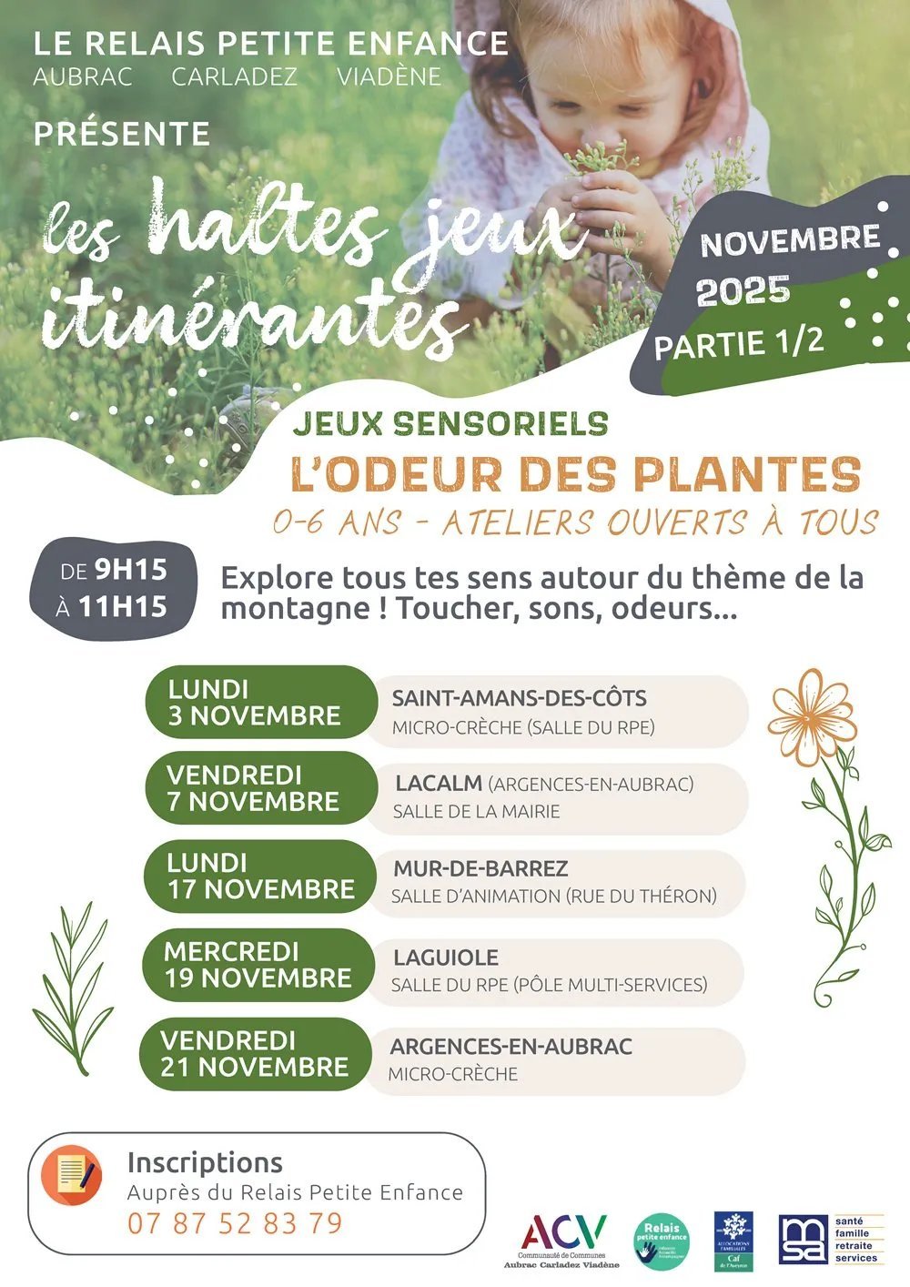 Atelier ouvert à tous au pôle multi-services (salle du RPE) de 0 à 6 ans, sur le thème de l'odeur des plantes.