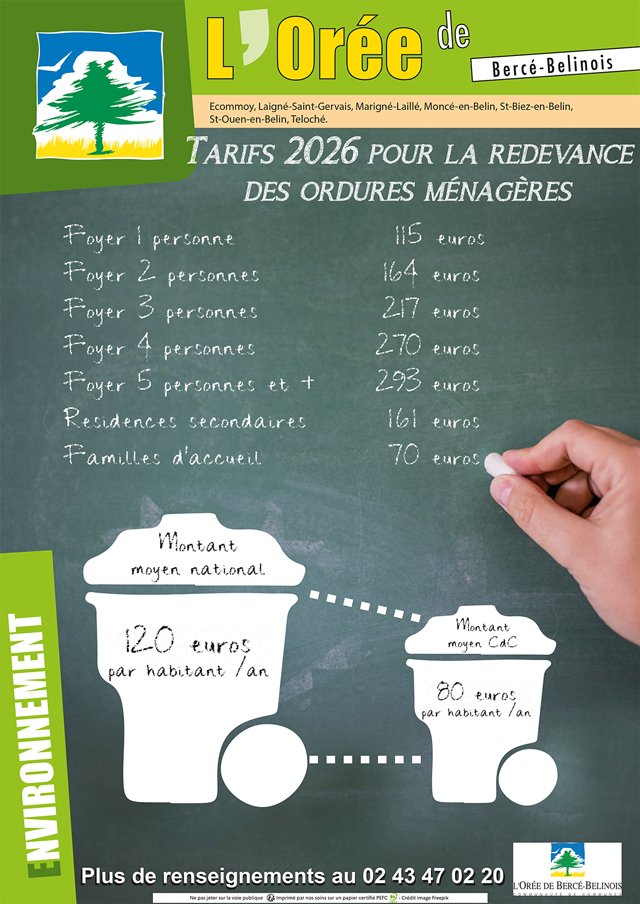 GESTION DES DÉCHETS : TARIFS 2026 DE LA REDEVANCE DES ORDURES MÉNAGÈRES