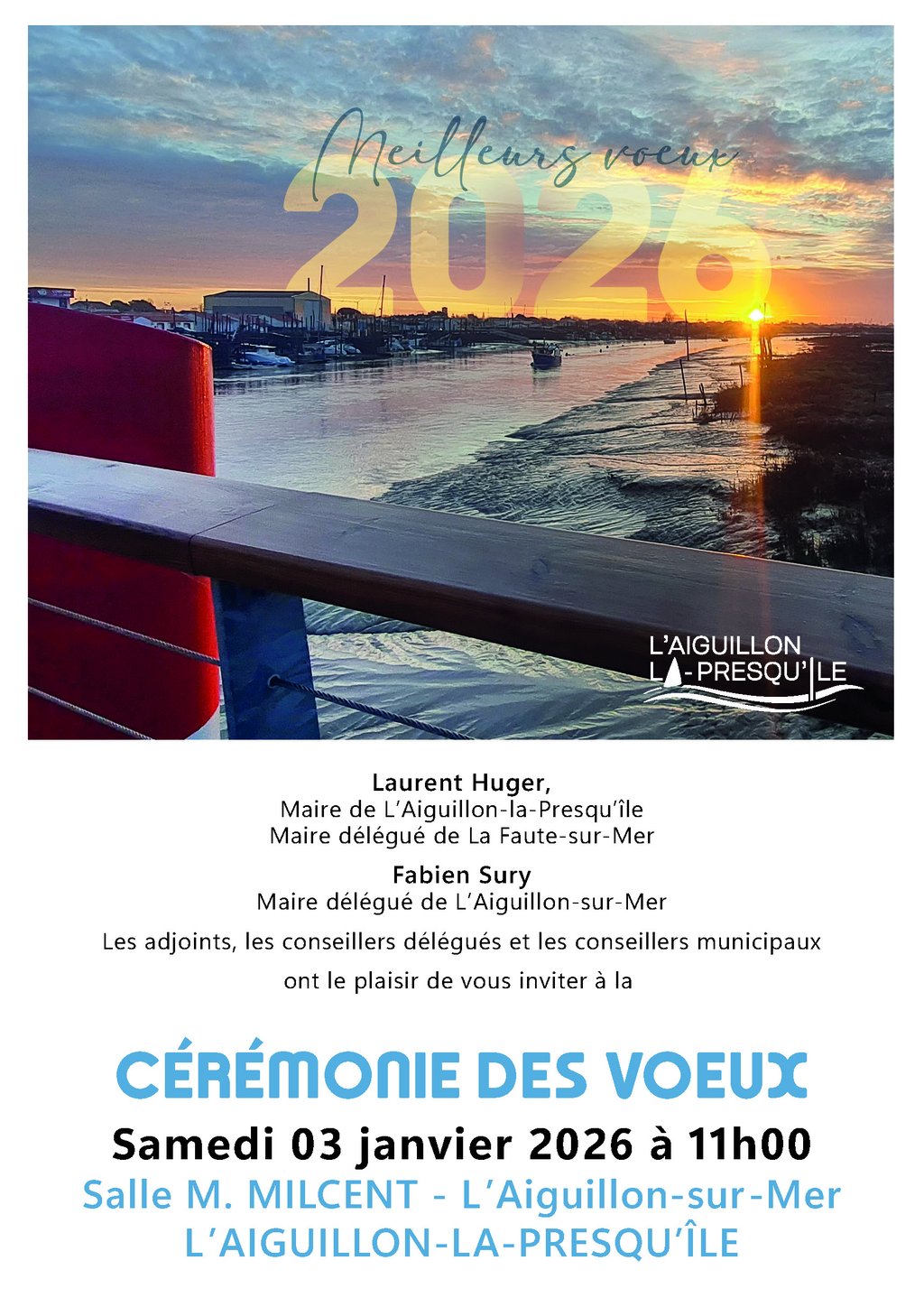 Cérémonie des voeux du maire le samedi 03 janvier à 11h00, salle M.Milcent à L'Aiguillon-sur-Mer