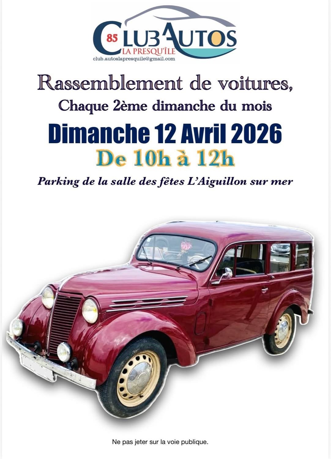 Rassemblement autos/motos de10h à 12h parking salle Milcent