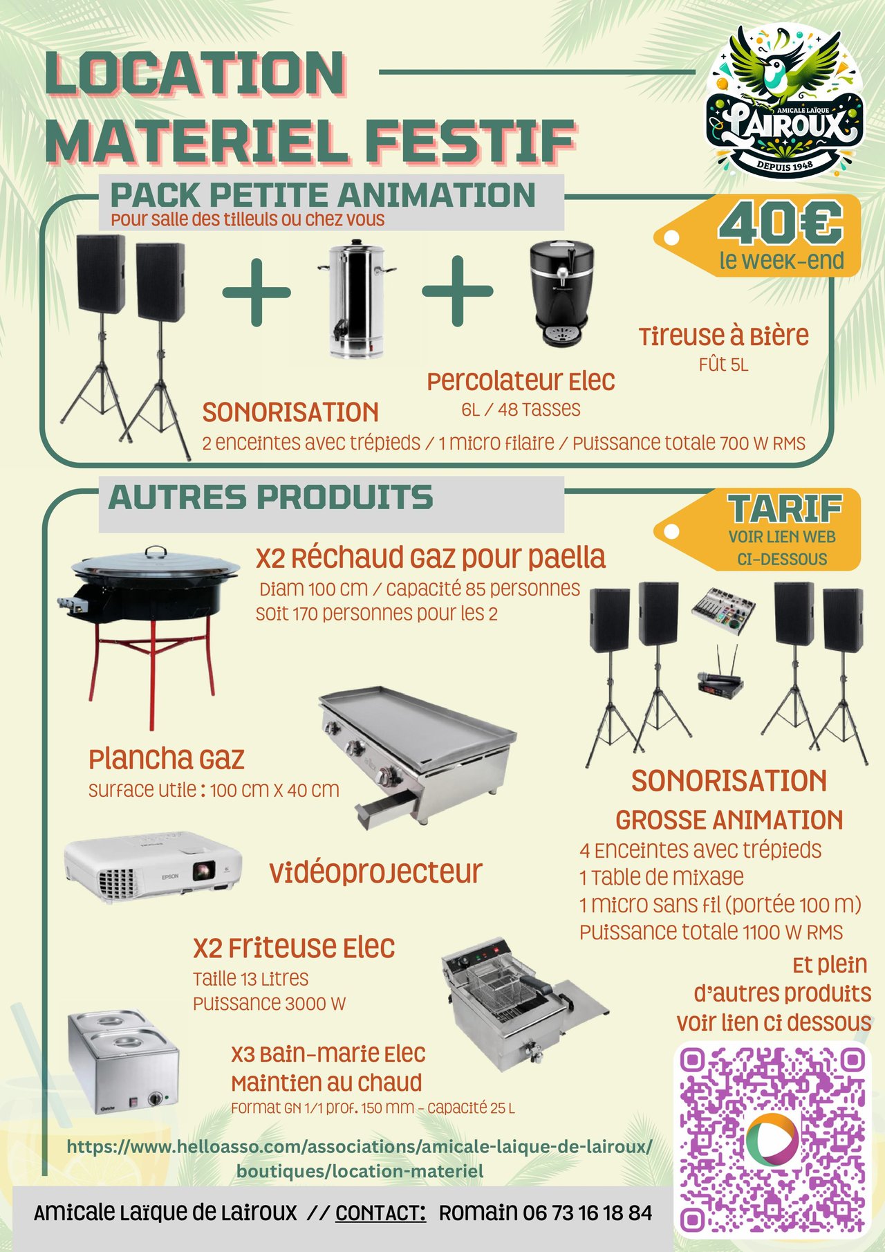Nous proposons la location de matériel festif et événementiel à Lairoux, près de Luçon, dans le sud Vendée 🥳