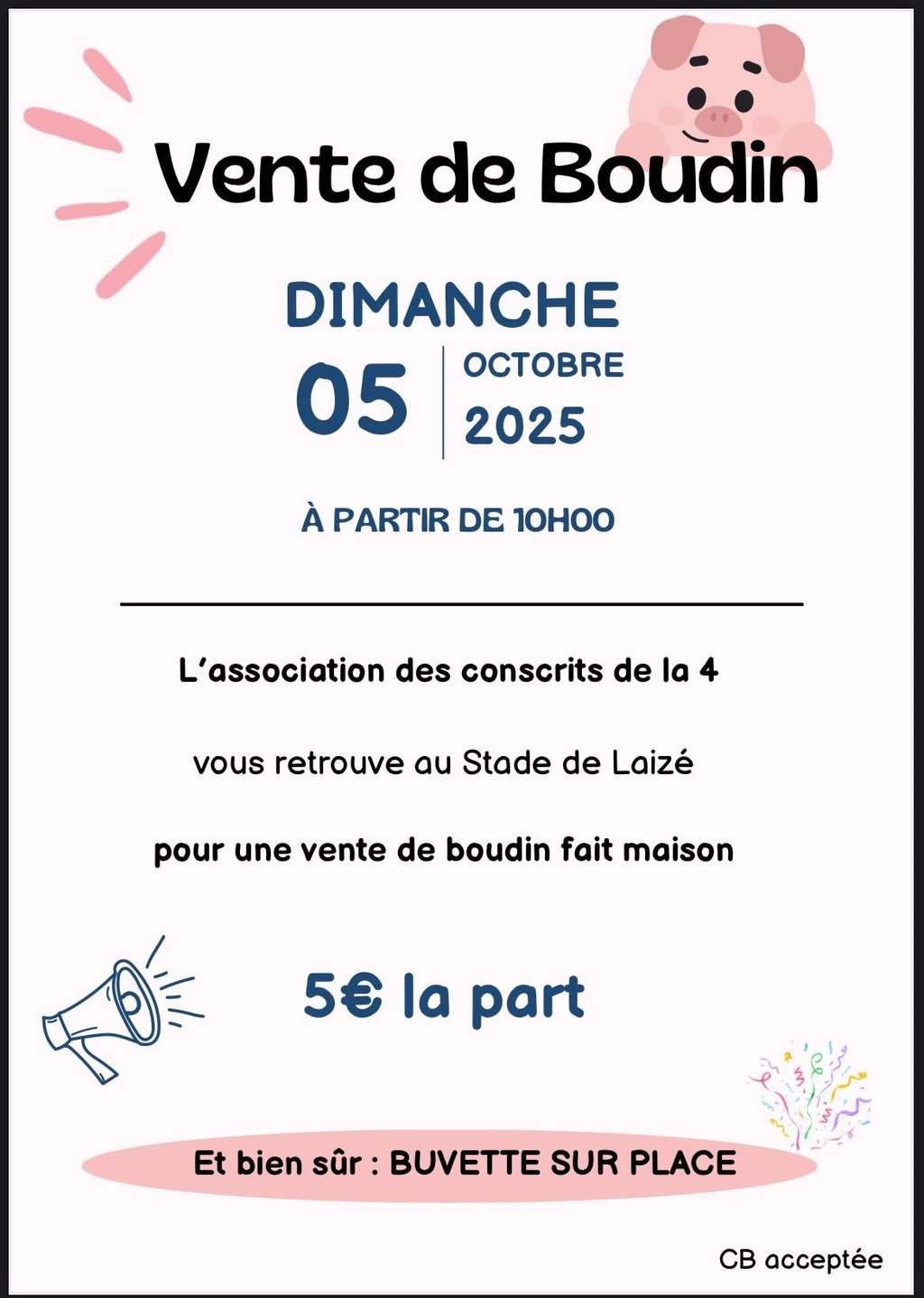 L'association des Conscrits de la 4 vous propose une vente de boudin