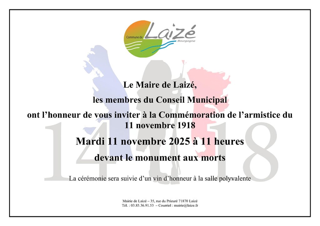 La Commune de Laizé vous invite à participer à la cérémonie commémorative qui se tiendra :