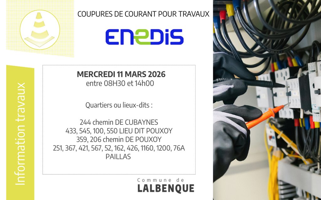 COUPURE DE COURANT POUR TRAVAUX LE 11 MARS 2026
