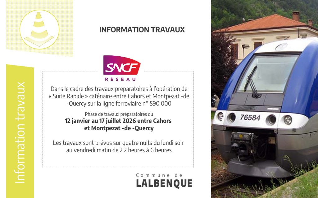 Phase de travaux préparatoires du 12 janvier au 17 juillet 2026 entre Cahors et Montpezat -de -Quercy