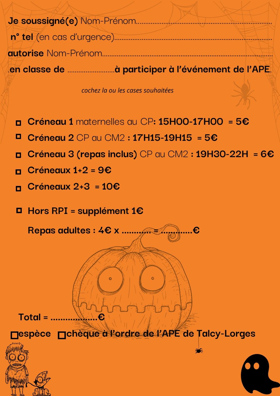 Pour s'inscrire, merci de nous retourner au plus vite par l'intermédiaire du cahier de liaison de vos enfants et d'ici le vendredi 17 octobre :