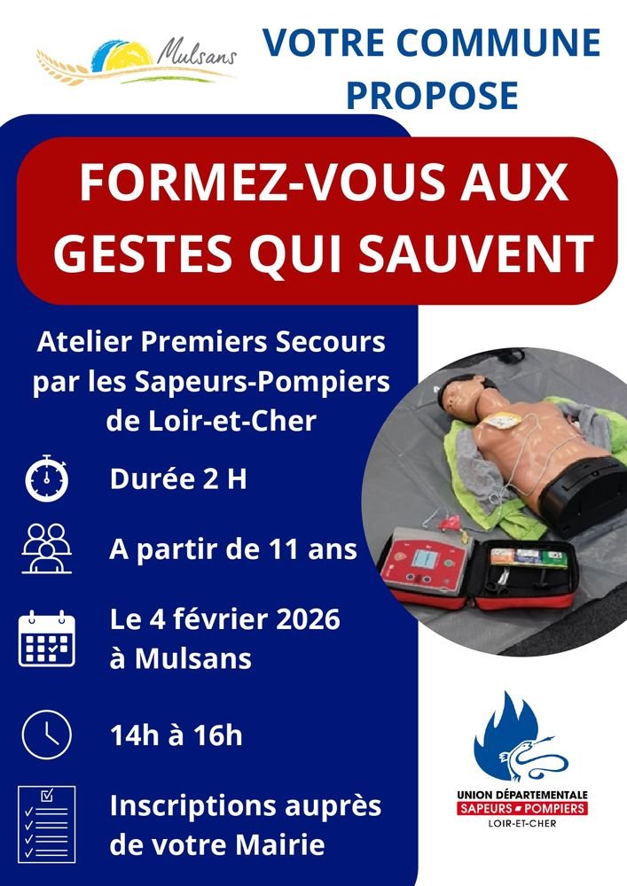 Par les sapeurs-pompiers de Loir-et-Cher. Renseignements et inscriptions : 02 54 87 34 73 mairie@mulsans.fr