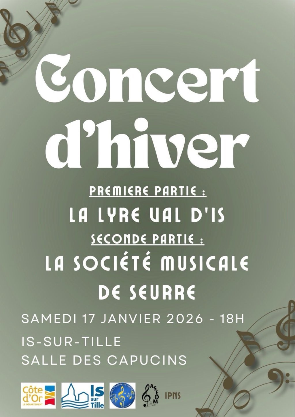 Concert de la Lyre Val D'Is et de la société musicale de Seurre samedi 17 janvier à 18 heures salle des Capucins à Is Sur Tille. Entrée gratuite