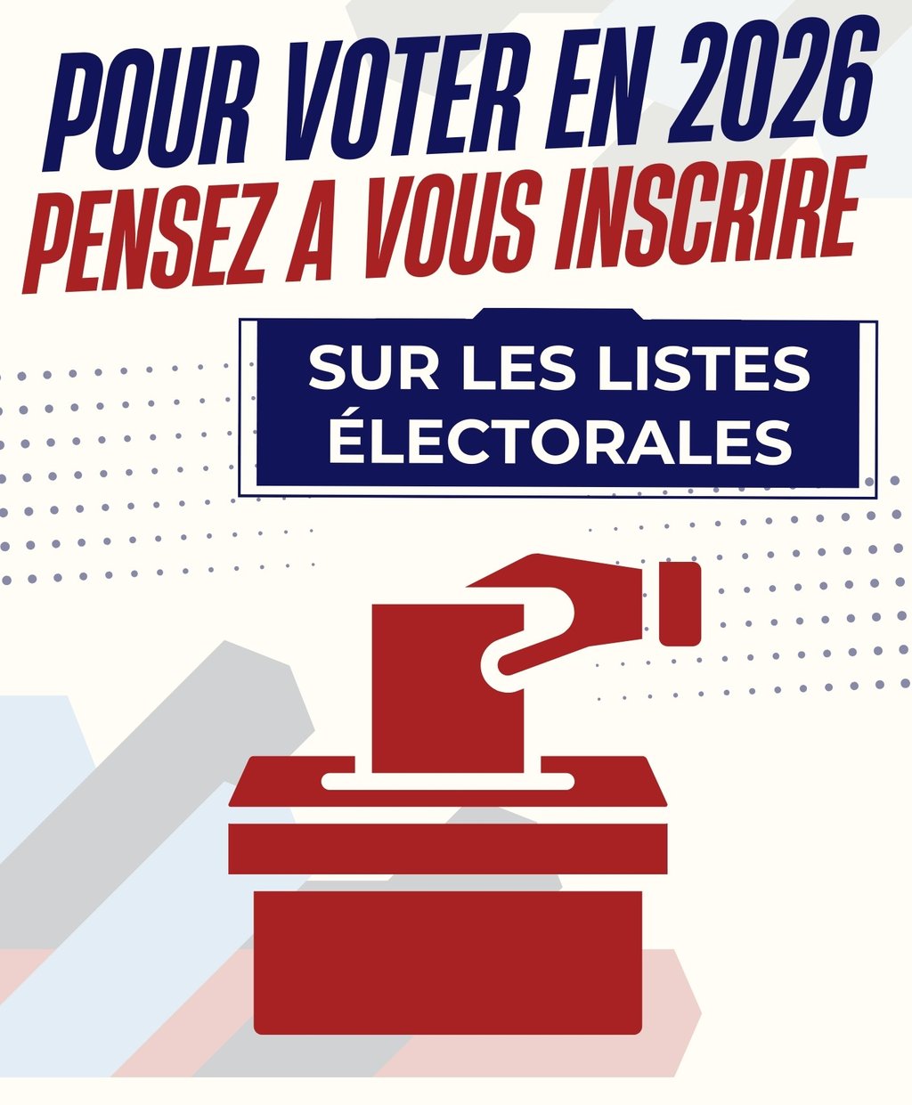 ÉLECTIONS MUNICIPALES MARS 2026 : PENSEZ À VOUS INSCRIRE SUR LES LISTES ÉLECTORALES