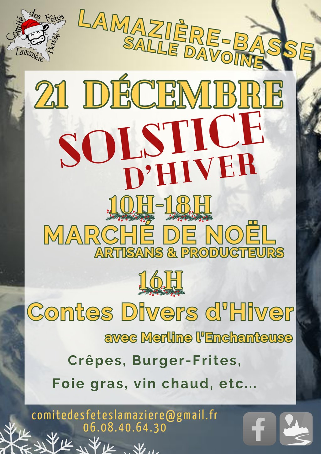 De 10 à 18h, rejoignez-nous à la Salle Davoine pour fêter le Solstice d'Hiver et surtout, faire vos derniers cadeaux de Noël !