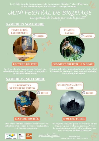 La Communauté de Communes Sidobre Vals et Plateaux et la Compagnie le Cri du Son, en partenariat avec les équipes des médiathèques du territoire, vous invitent à noter ce rendez-vous "Lecture bruitée" dans vos agendas !