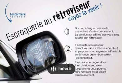 Mise en garde d’une arnaque qui se répand sur notre territoire : les « arnaques au rétroviseur ».
