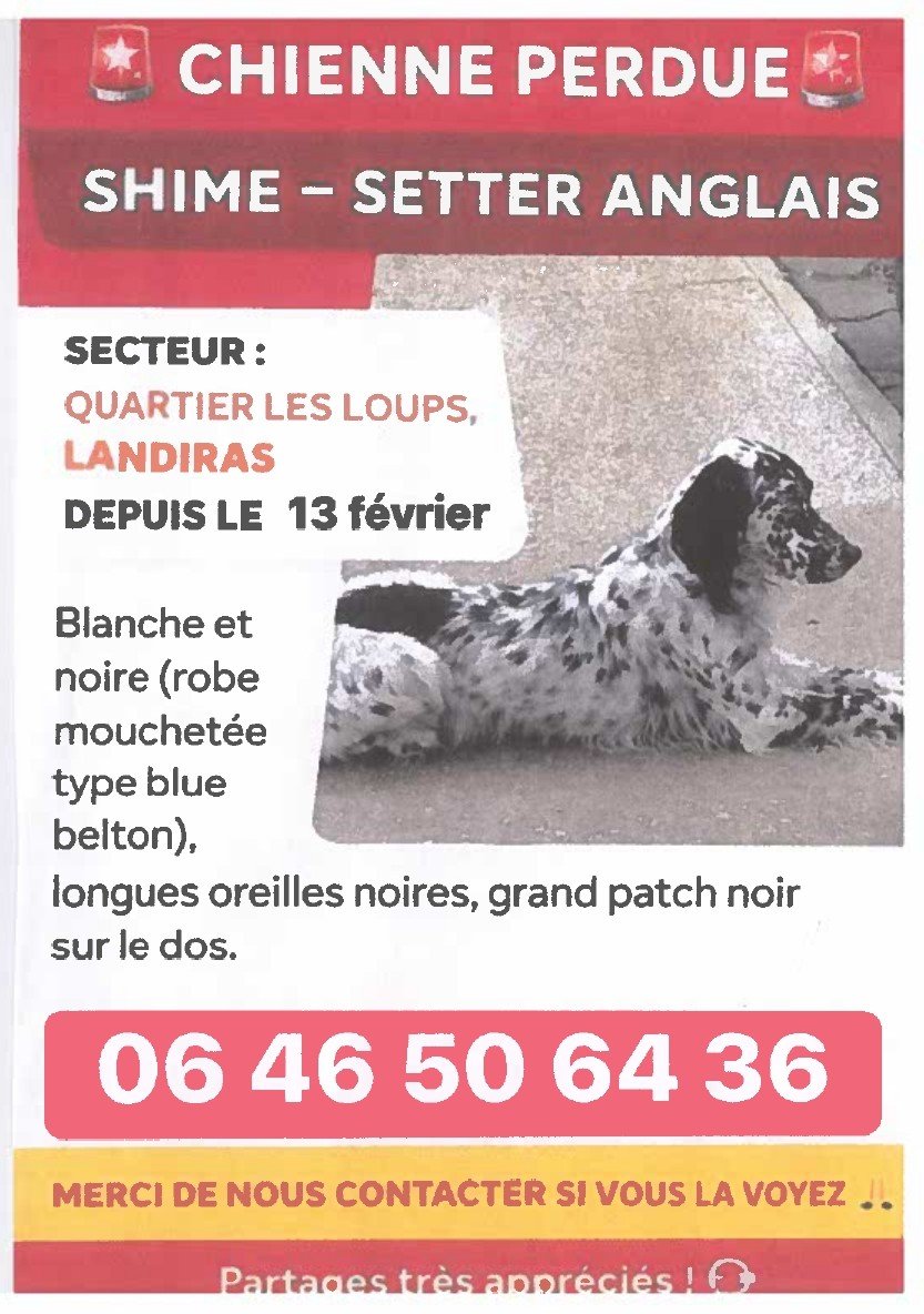 Si vous l’apercevez merci de contacter le 06 46 50 64 36