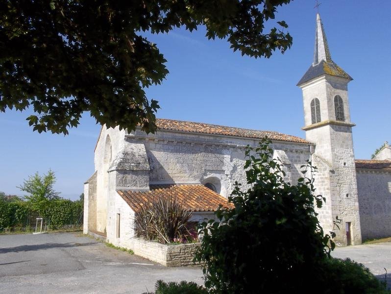 La construction de l'église date du XIIIe siècle, pendant la guerre de Cent Ans, à l’époque où les Anglais, après le traité de Brétigny, en 1360, occupaient l’Aunis et la Saintonge. Cette église romane, comme la plupart des autres édifices religieux, a souffert des guerres. Elle y a perdu son clocher d’origine, reconstruit sur le flanc de la nef en 1848. On estime qu’à l’origine, le clocher surmontait l’entrée de l’église, comme c’est le cas dans de nombreux villages des environs.