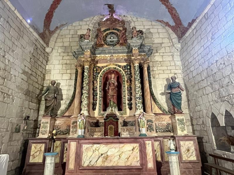 La particularité de cette église réside dans son retable en pierre sculptée peinte exécuté en 1663 et 1686. D'abord construite au XIIIème, l'église fut reconstruite au XVIIème siècle. Le petit clocher carré quant à lui, fut construit en 1848.