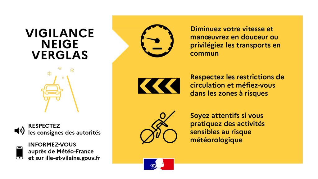 Le département d'#IlleEtVilaine est placé en vigilance jaune #neige #verglas pour les 2 et 3 janvier 2026.