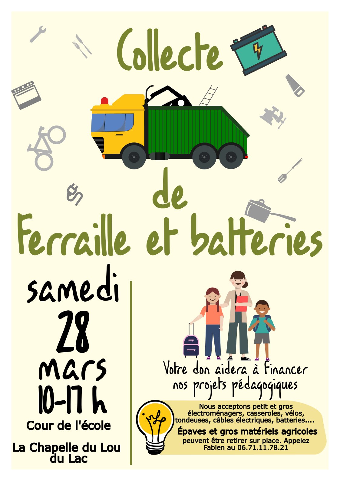 L'OGEC renouvelle sa collecte de ferraille, elle sera organisée :