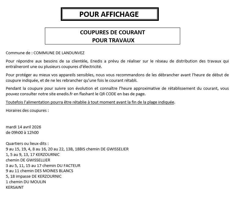 COUPURE DE COURANT LE 14 AVRIL 2026
