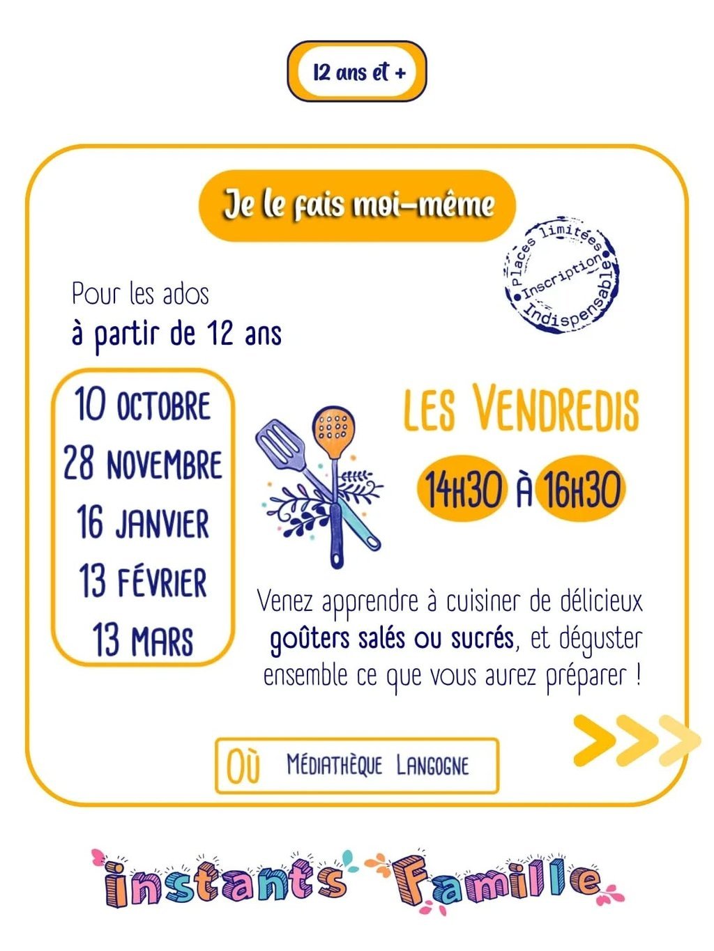 INSTANTS FAMILLE - ATELIERS CUISINE "JE LE FAIS MOI-MÊME"