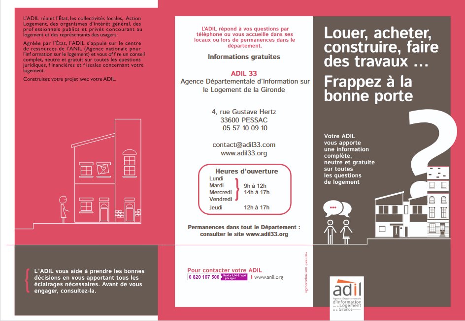 📞 Prise de rendez-vous obligatoire auprès de l’ADIL 33 au 05 57 10 59 43 du lundi au vendredi de 14h à 17h