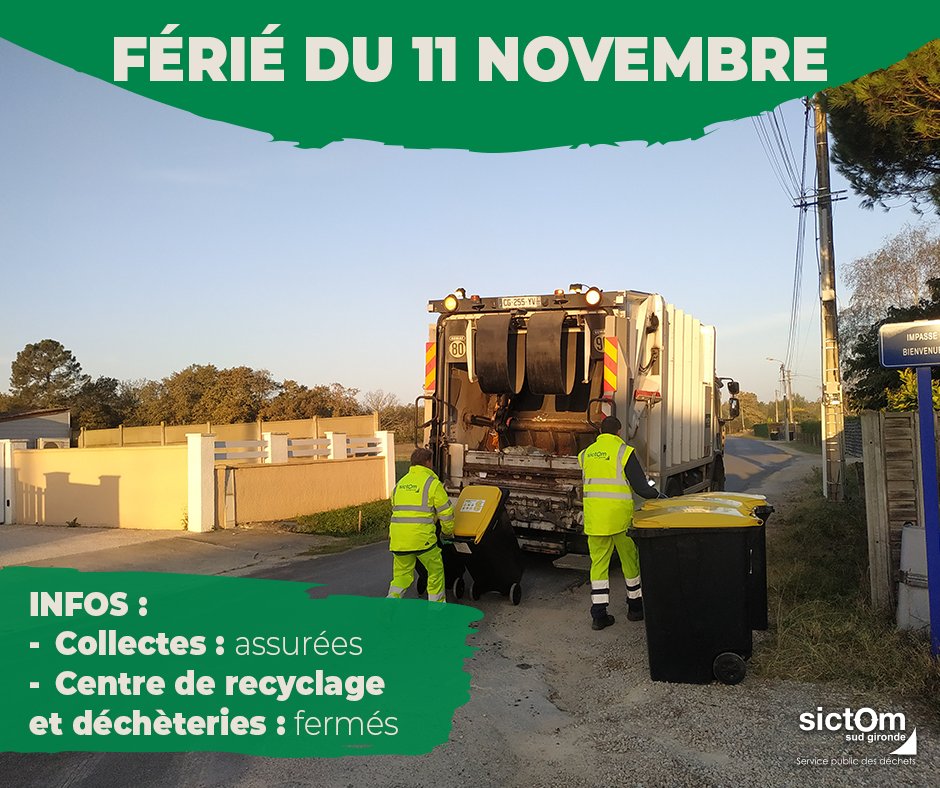 FÉRIÉ DU MARDI 11 NOVEMBRE : UN POINT SUR LA COLLECTE DES DÉCHETS